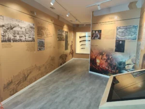 • ⁠Painéis explicativos com imagens da época;